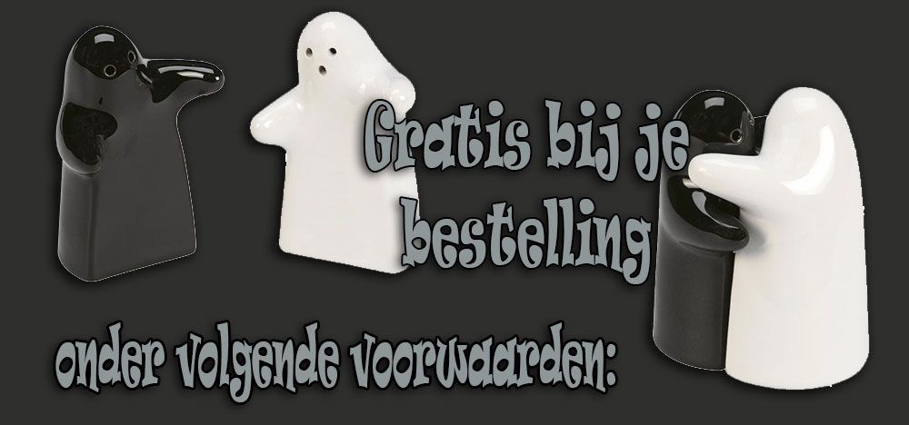 Je zal in je pakje 1 peper-/zoutvat spookje vinden (wit of zwart) als je:
